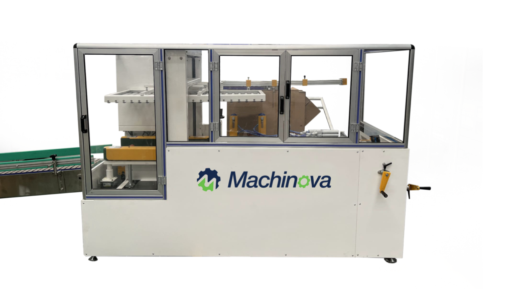 Efficiently form cases from flat blanks, preparing them for packing. High-speed operation, precise case forming, and easy setup for various case sizes.
